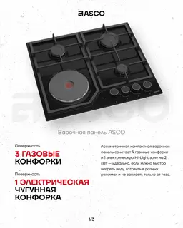 Функциональность, которая делает готовку удобнее.Эта модель объединяет три газовые конфорки и одну электрическую зону Hi-Light мощностью 1800W. Газ — для быстрого разогрева и жарки, электрическая зона — для равномерного нагрева …
