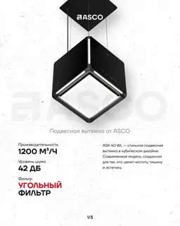 ASK 40 BL — стильная подвесная вытяжка в кубическом дизайне.