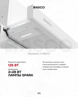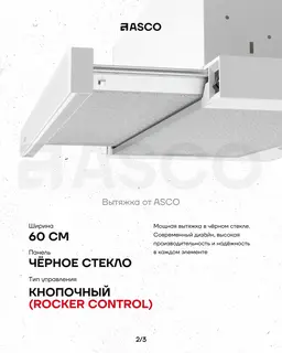 ASCO 60 см Telescopic Hood — мощная вытяжка в белом стекле. Современный дизайн, высокая производительность и надёжность в каждом элементе.Характеристики: • Ширина — 60 см • Панель — чёрное стекло …