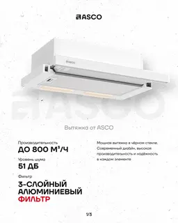 ASCO 60 см Telescopic Hood — мощная вытяжка в белом стекле.