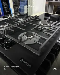 Варочная панель ASCO — 4 газовые конфорки, SABAF, LED-ручки, сенсорный таймер