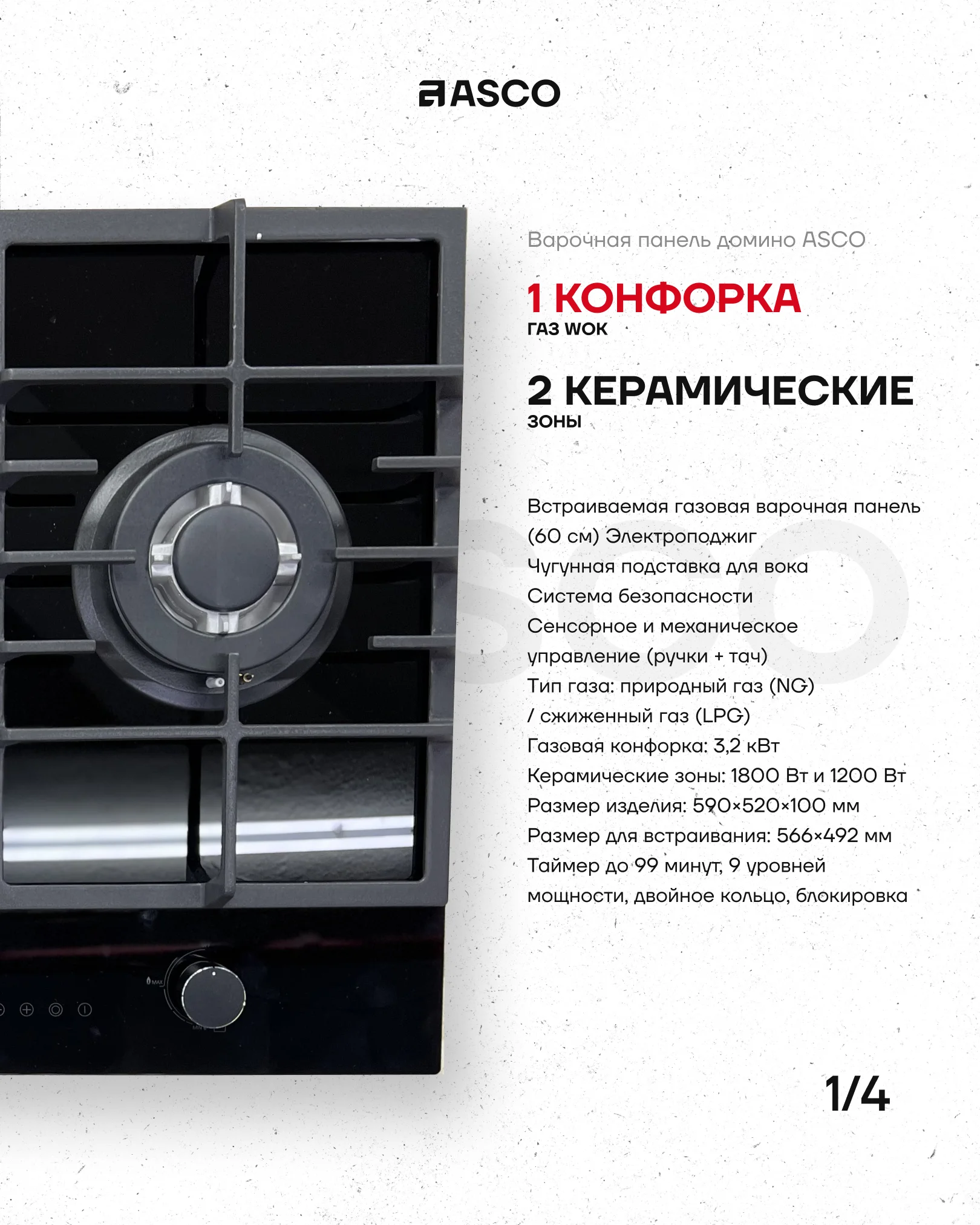 и поворотными ручками с таймером до 99 минут обеспечит комфорт и безопасность. Чугунная подставка для вока и система блокировки делают её идеальным выбором для современной кухни.
