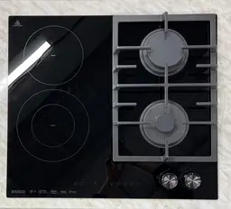 Встраиваемая газовая варочная панель 60 см — сочетает газ и электричество для максимального удобства. Оснащена электроподжигом, системой безопасности, чугунной подставкой для вока и комбинированным управлением (сенсор + ручки). Две газовые конфорки (2,4 и 1,0 кВт) и две керамические зоны (1800 и 1200 Вт) обеспечат гибкость в приготовлении. Таймер до 99 минут, 9 уровней мощности и функция блокировки делают готовку комфортной и безопасной