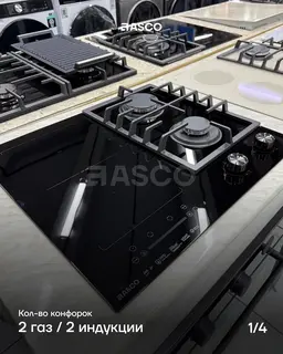 Варочная панель ASCO — газ + индукция, 4 зоны, закалённое стекло