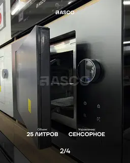 Микроволновая печь ASCO25 л, функции микроволновки/гриля/конвекции,матовое чёрное стекло, полное сенсорное управлениес поворотным регулятором TFT